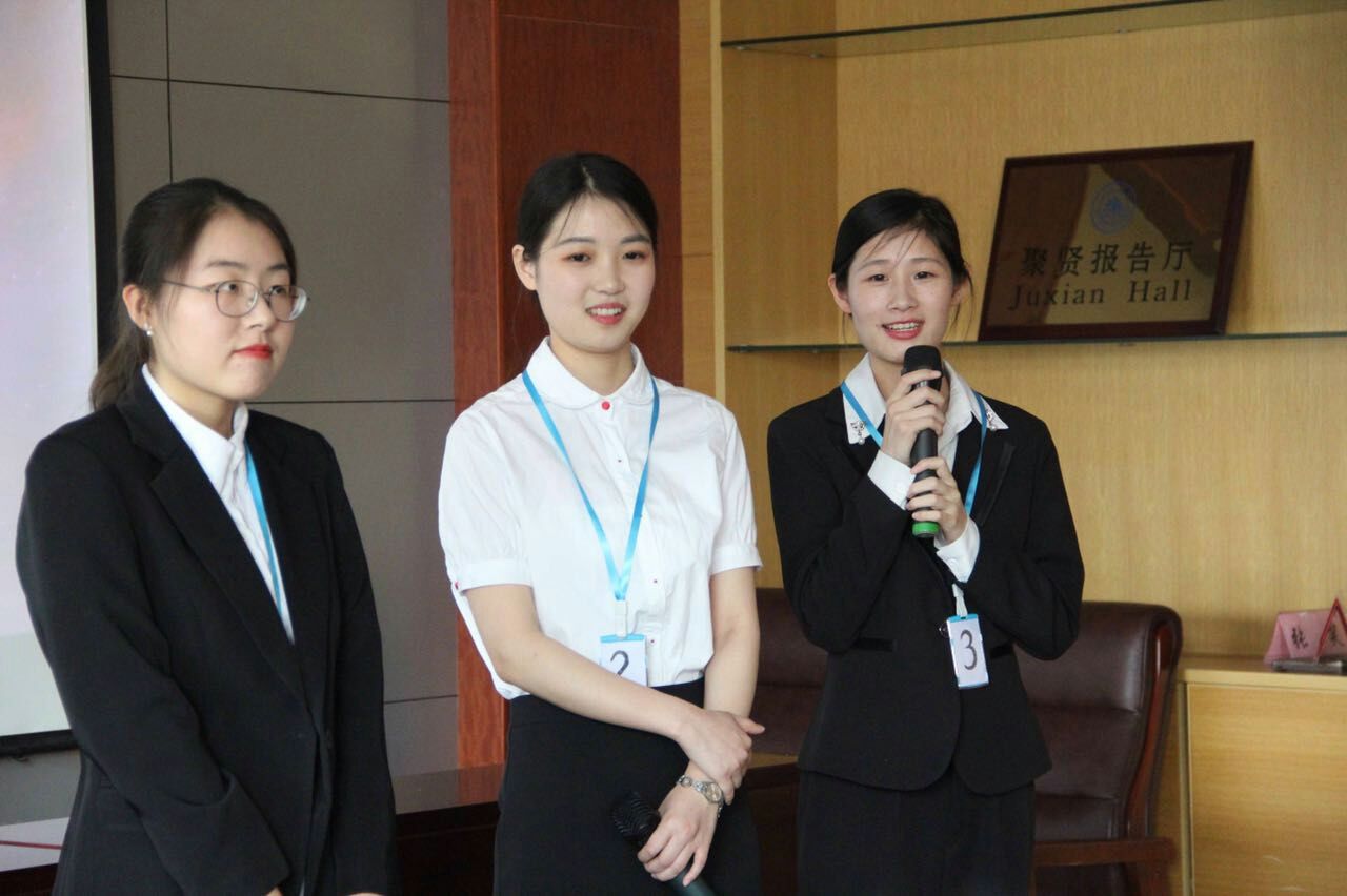 比赛于下午两点正式开始。六位选手按照抽签顺序组成两组,依次进行了第一环节的个人展示。一号冯嘉祺同学介绍了自己的校内外成绩以及实践经历;二号于立雪同学则向大家展示了热情,认真,并富有责任心的自己;三号徐子珍同学着重讲述了她的大学经历,分享了她的故事;四号马卓如同学则针对自己的目标岗位——投资经理人做了详细的阐述;五号王文韬同学展示的角度与前四位同学都不同,主要介绍了她的第二校园经历与校外活动;唯一的15级选手——六号胡靓同学则用自己的经历阐释了认真,勤奋,责任,创新的含义。