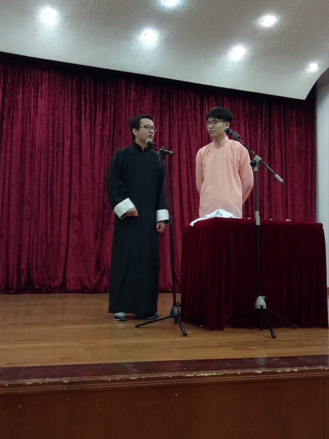 学逗相声巧,因缘啼笑真。山东大学曲艺团、山东大学相声协会与中科大相声协会的此番联谊,将不仅增进学校之间的兄弟情谊,更是曲艺团、相声协会迈入发展新阶段的良好开端。作为山东大学学生艺术团不可或缺的一部分,以及成立于2007的山东大学最欢乐的社团,曲艺团、相声协会始终秉持着将欢乐带给大家的社团理念。此番交流正值相协十周年,此中深意不可谓不大。协会珍惜此次机会,与中科大相声社进行积极有效的接洽,排好节目,展示传统文化—相声经久不衰的独特艺术魅力,更展示了山大曲艺团、相协的风采。