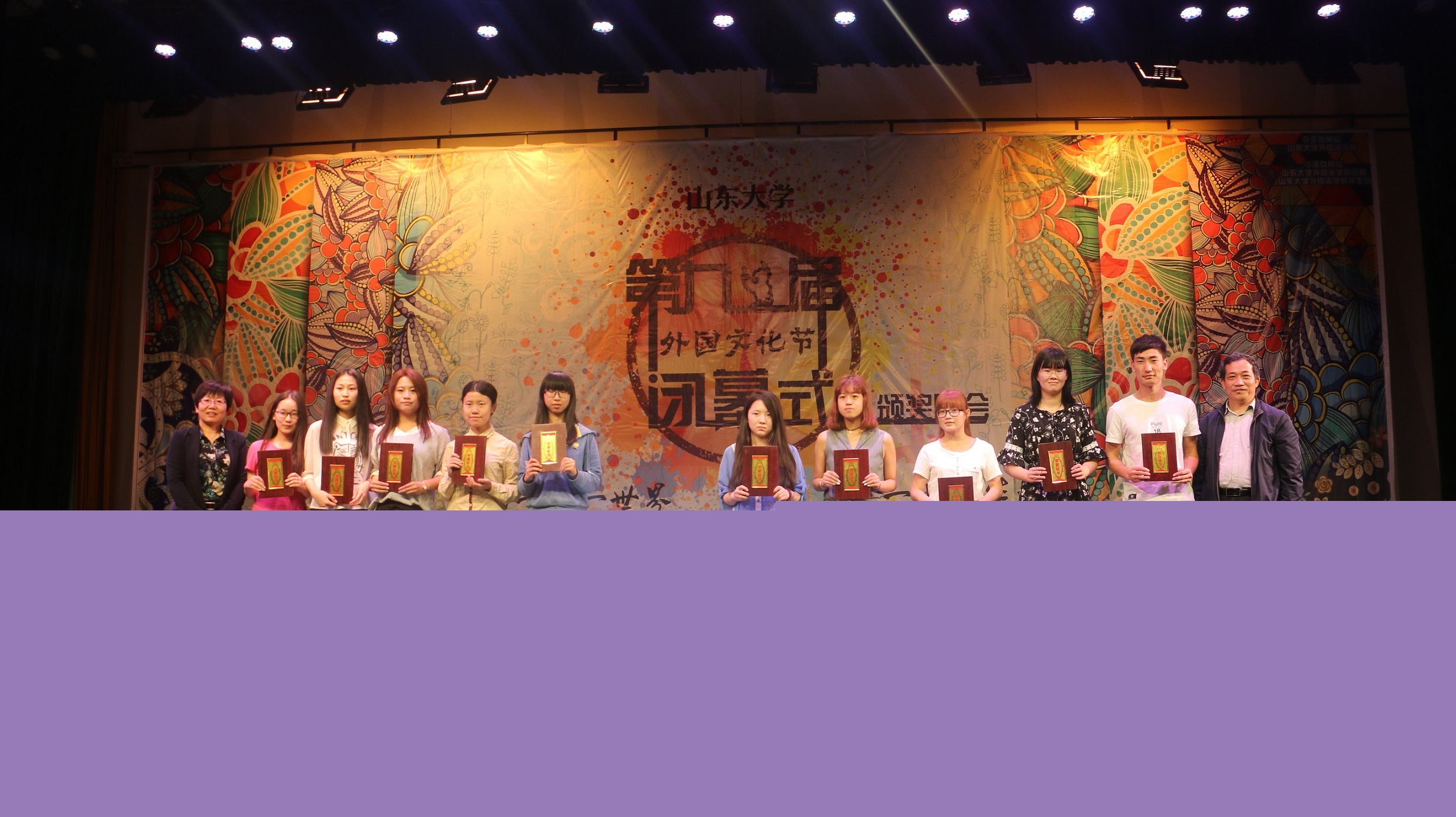 5月16日晚,山东大学第九届外国文化节闭幕式暨颁奖晚会在中心校区圣昆仑音乐厅举行。校本科生院院长赵炳新,本科生院教务管理办公室主任齐炳和,校国际事务部副部长宋春玲,校团委副书记张熙,艺术学院党委书记史永志,济南外国语学校高中部校长刘汉路,外国语学院党委书记郑倩,院长王俊菊,副院长李建刚和副书记高弟出席闭幕式。本次晚会为观众奉献了一场精彩绝伦的视听盛宴,并为在活动中脱颖而出的获奖者颁奖。
