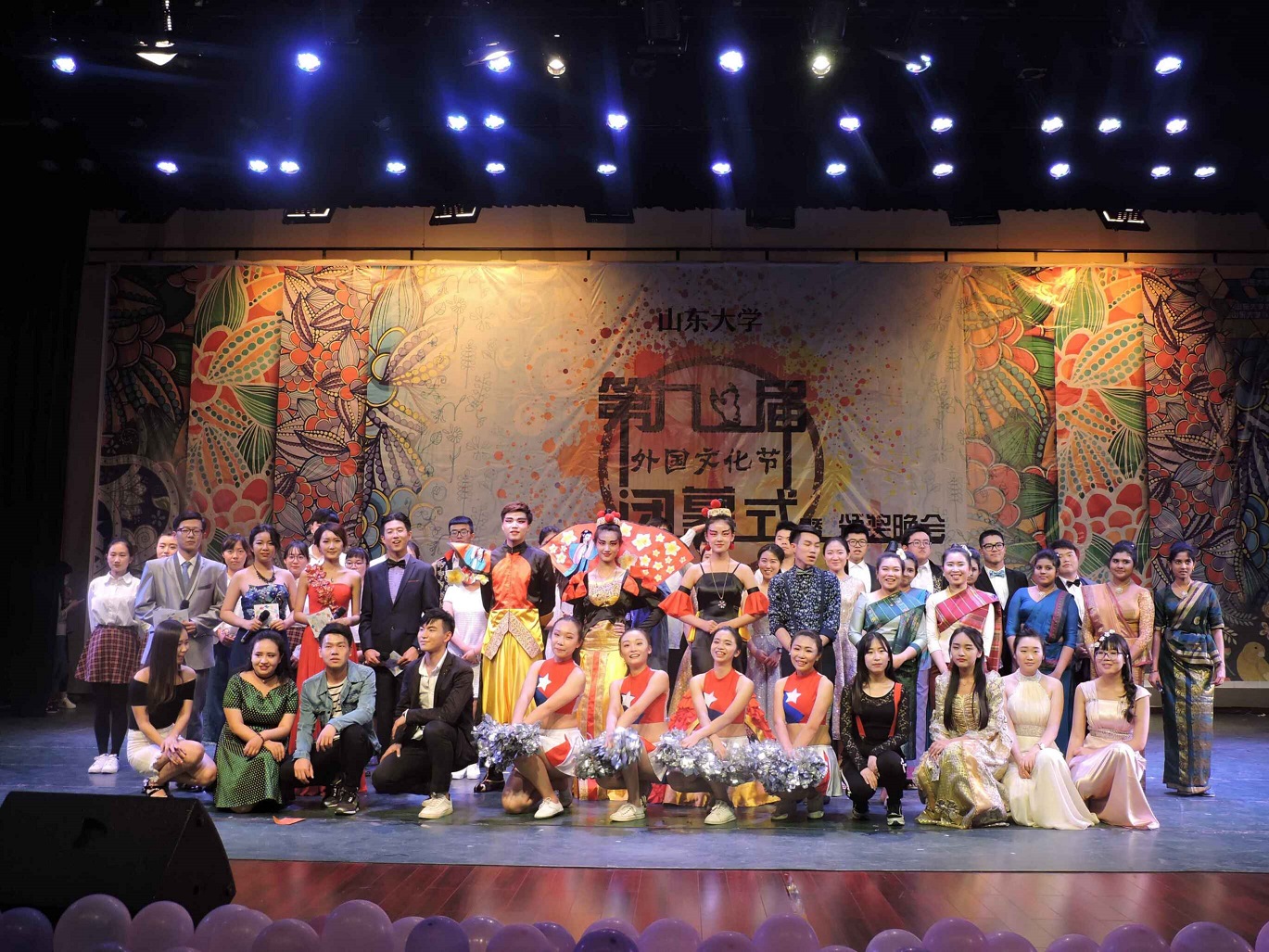 表演结束后,学校和学院领导老师及表演人员上台合影留念。本届外国文化节主题为“七语一梦一世界,五洲一曲一华章”,通过丰富多彩的活动,为同学们提供了提高外语水平,领略文化魅力的平台。随着外文节闭幕式的结束,山东大学第九届外国文化节也落下了帷幕。外文节带来的不仅仅是精彩的赛事,更是一场令人难忘的文化盛宴。它营造了外语学习氛围,提升了外语学习的吸引力,提升了大学生外语学习的积极性。